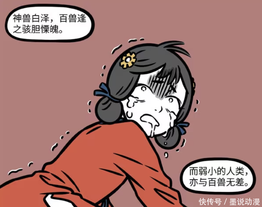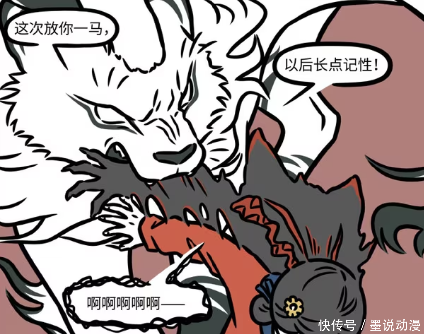 《非人哉》漫画版中,黑狐盯上小女孩,目的是接近白泽,还想吃掉他。可是白泽是谁?他是万兽之王旗开网,区区黑狐也敢在他面前造次?白泽化为神兽形态,直接将黑狐从小女孩的体内剥离,只是没有将它解决。至于小女孩,看到白泽这副模样,那是被吓到浑身颤抖。