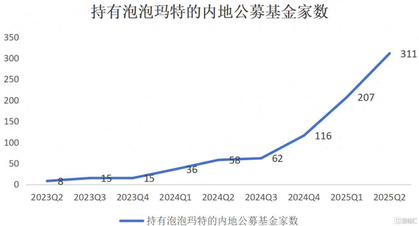 根据wind数据显示,持有泡泡玛特的内地公募基金家数已实现连续 7 个季度的增长,从2023年一季度的不足50家,一路攀升至2025年二季度的311家,机构投资者对其青睐程度可见一斑。